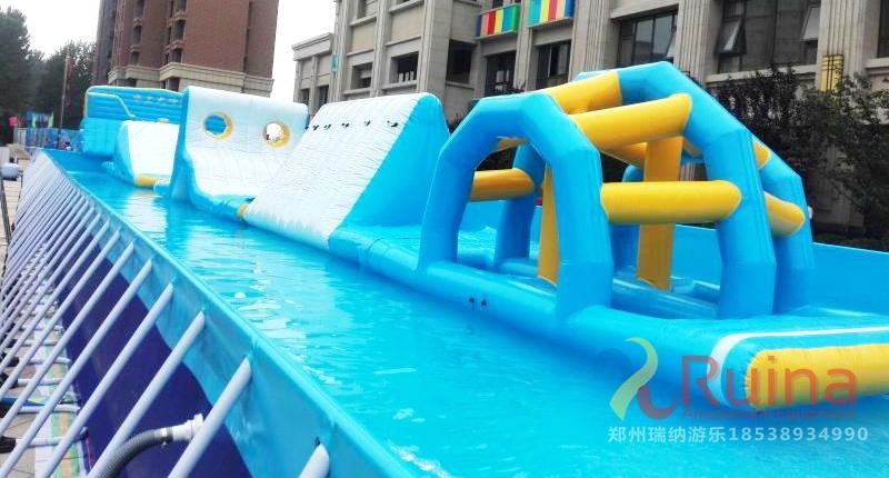 水上沖關(guān)所采用的支架水池是用高強(qiáng)度的環(huán)保PVC和國(guó)標(biāo)無(wú)縫鋼管組成的,可以極大地保證游客的嬉水安全。每個(gè)支架水池都配有自動(dòng)化凈水一體機(jī),不間斷地進(jìn)行水質(zhì)處理,保證水質(zhì)安全,讓游客更放心。歡樂盛夏,水上沖關(guān)等您來(lái)挑戰(zhàn)。